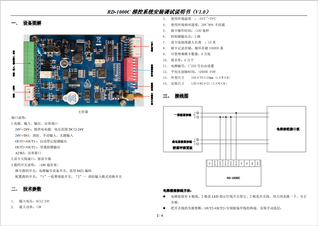 RD-2000A 梯控系統(tǒng)安裝調(diào)試說(shuō)明書(V1.1)